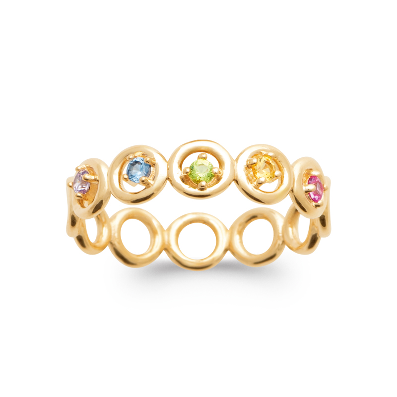 Bague plaqué or 18 carats et oxydes de zirconium multicolores