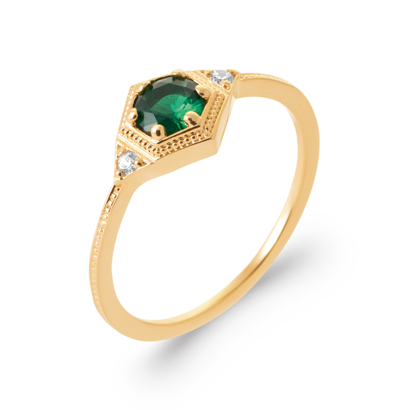 Bague en plaqué or 18 carats et oxyde de zirconium vert