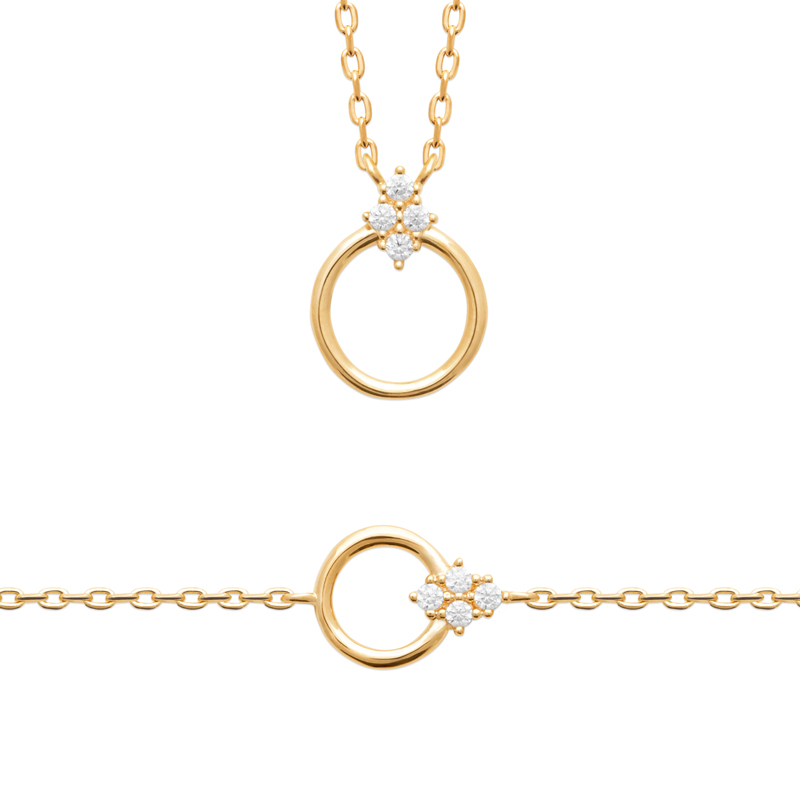 Collier en plaqué or 18 carats, pendentif rond avec oxydes de zirconium
